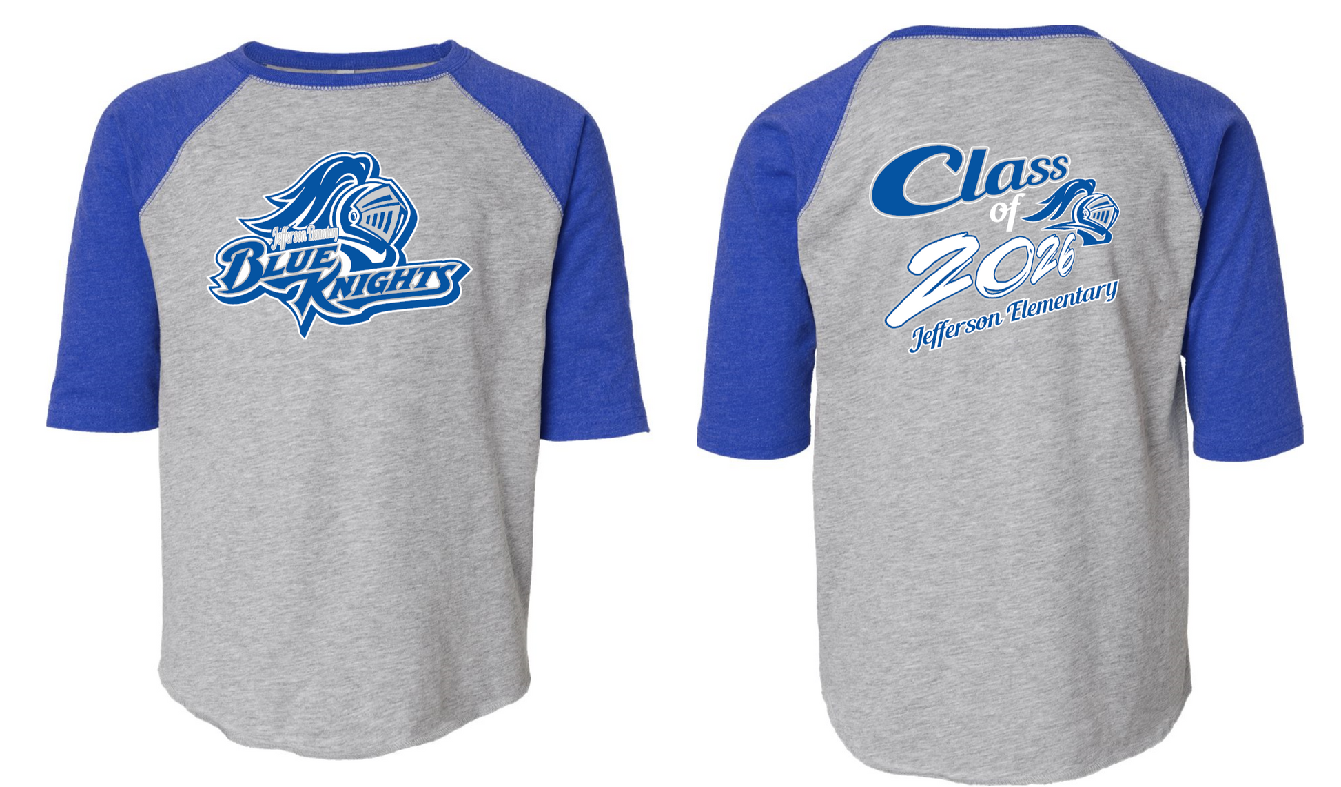 Jefferson Elementary School RAGLAN Sleeve Blue Knight Tee (youth & adult)